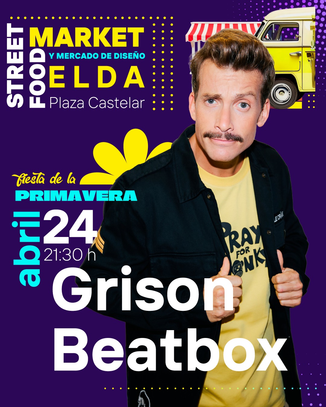 Desde el viernes 24 al domingo 26 de abril, Elda se llena de sabor, música en directo con Grison Beatbox, Guaraná o Keeng, y nuestro tradicional Mercado de Diseño.