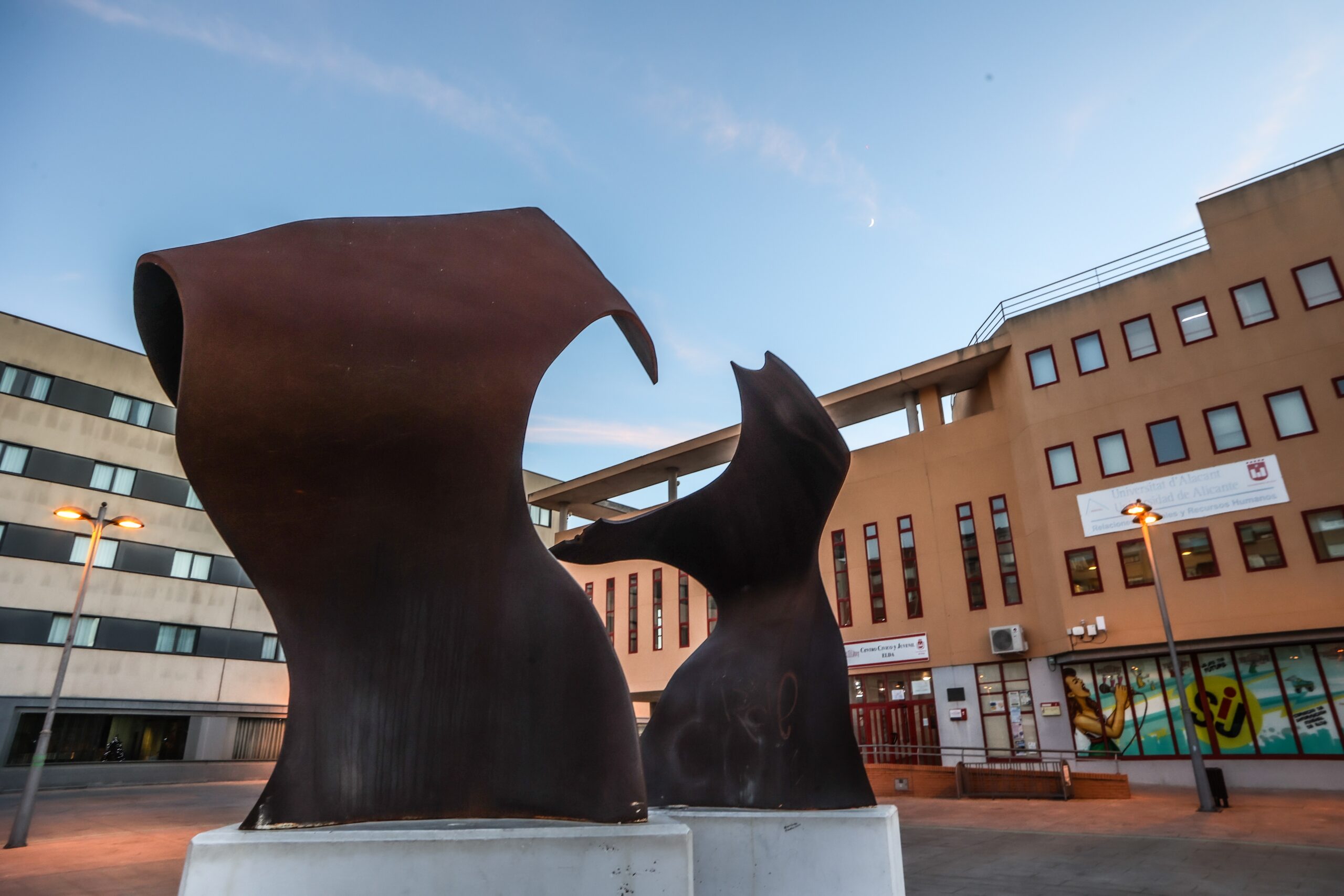 Obra de Sócrates de la Encarnación, fue inaugurada en 2003 por Carmen Cervera tras su nombramiento como “Mejor Calzada de España”, acompañada de autoridades y personalidades como el director Luis García Berlanga. Sobre sendas estructuras cubicas de hormigón se levantan dos grandes láminas de hierro a modo de pieles curtidas que esperan ser cosidas por la diestras manos de las aparadoras, quienes confieren una calidad excepcional al calzado de Elda.