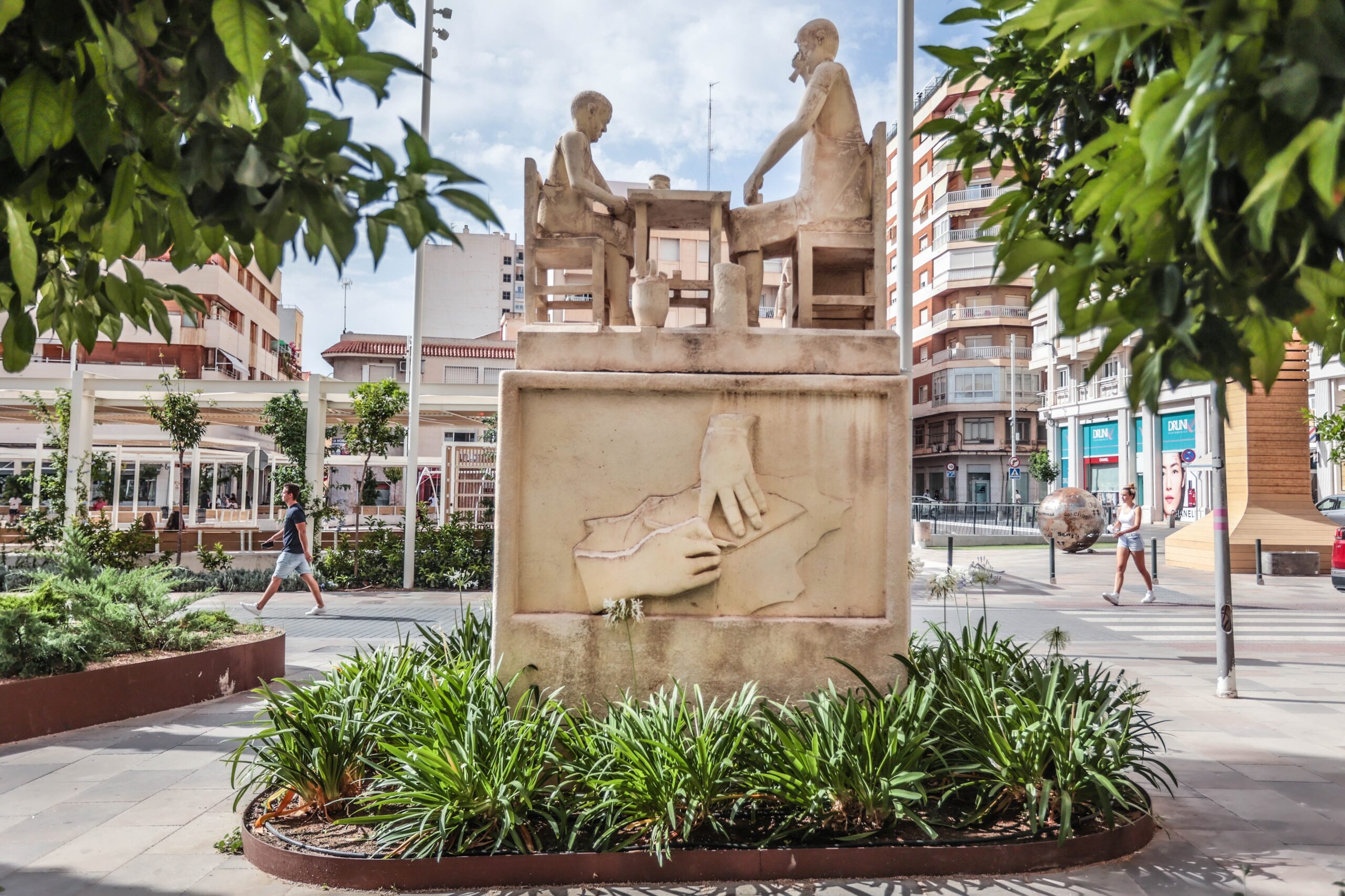 Realizado por José Francisco Maestre Pérez, “Francho”, en 2005 y situado junto al Museo del Calzado, consta de una gran peana sobre la que se levanta la escultura que alcanza los 2,5m de altura y un peso de 850kg. El conjunto representa a una familia que observa con atención el trabajo manual del padre, quien golpea con su martillo los clavos de una horma.
