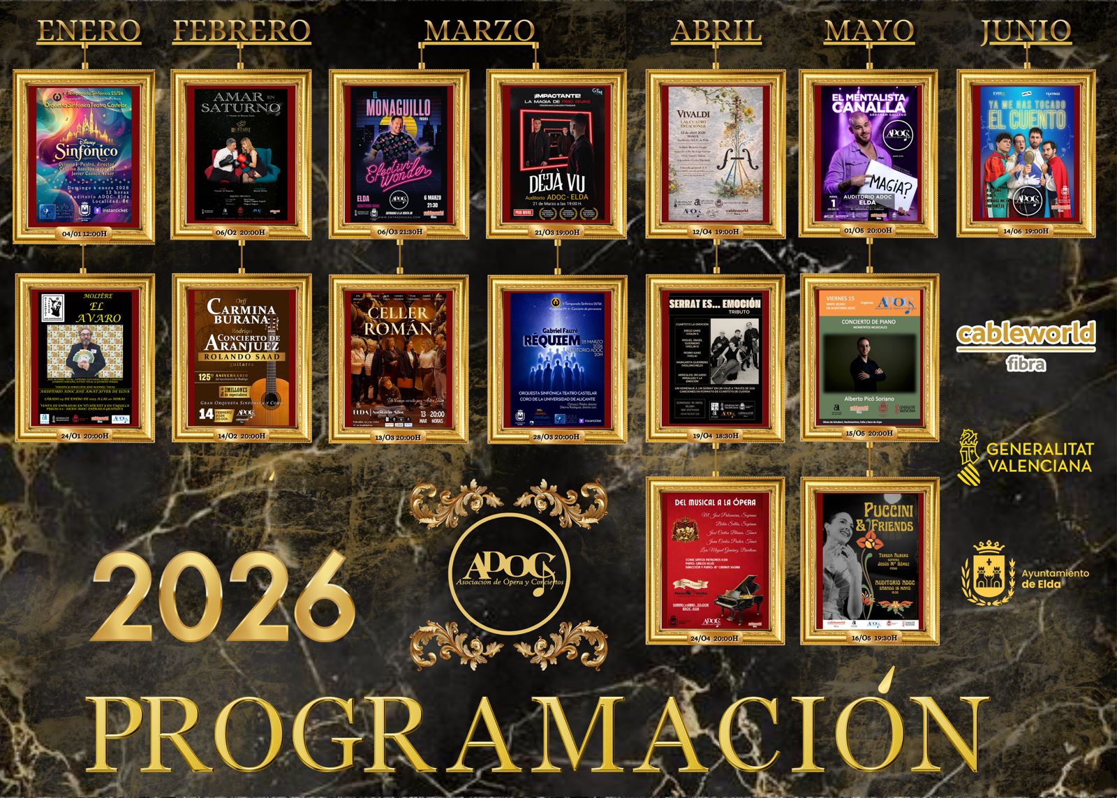 Pero, no sólo la Música y Ballet tienen cabida en el Auditorio ADOC, también eventos culturales de diversa índole, que van desde presentaciones literarias, hasta la celebración de otros muchos actos de colectivos locales, como asociaciones de fallas o comparsas de fiestas de Moros y Cristianos.